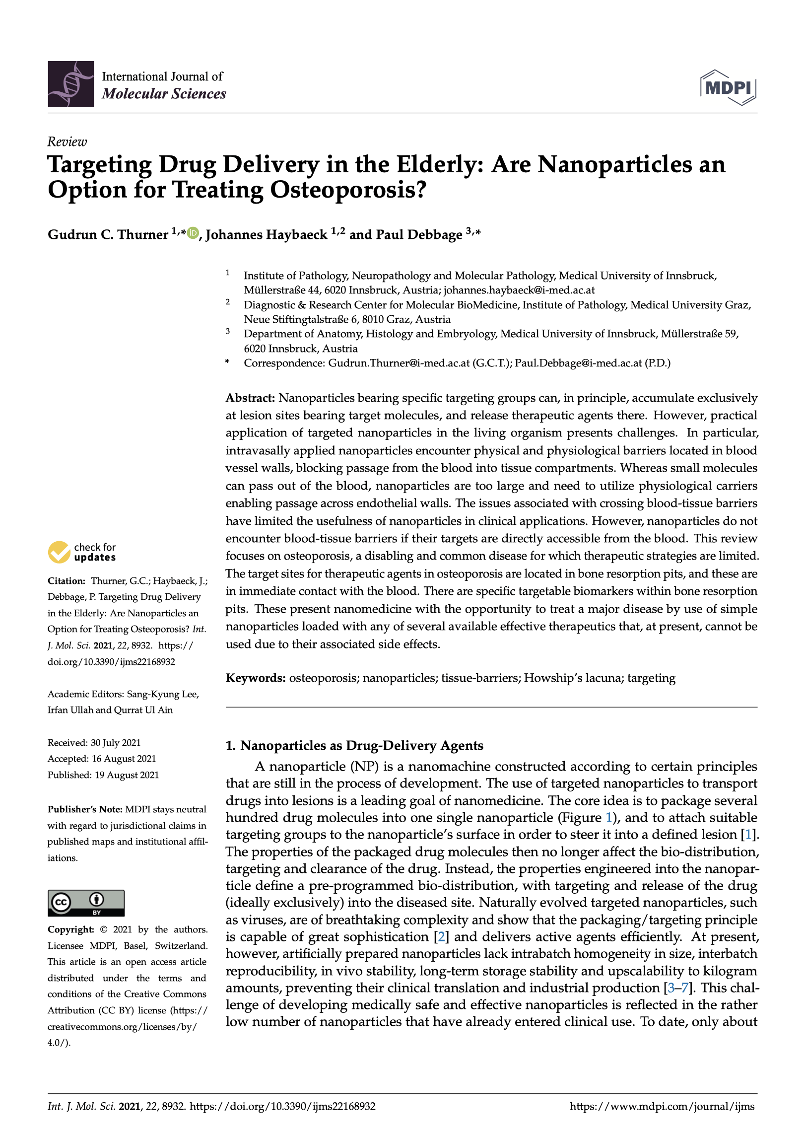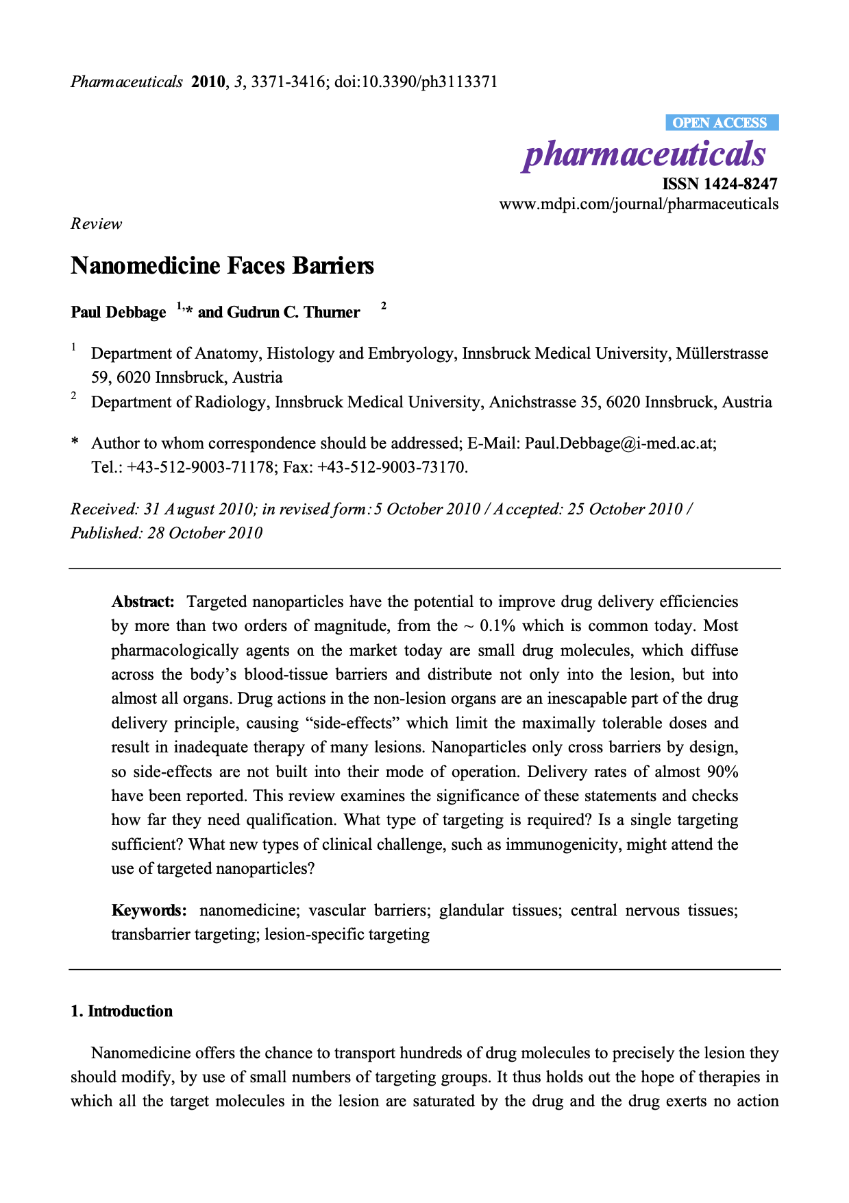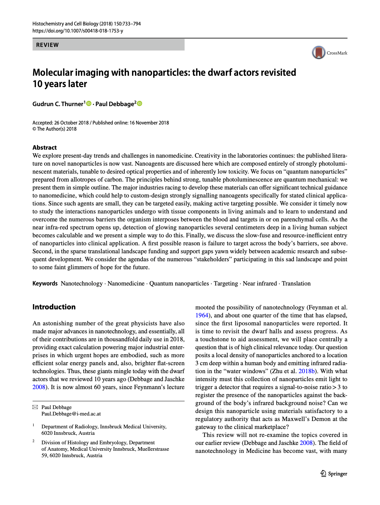 Principle investigator and founder of Stams Diagnostics GmbH, Paul Debbage, describes the challeges of targeting by nano particles and suggests a solution.